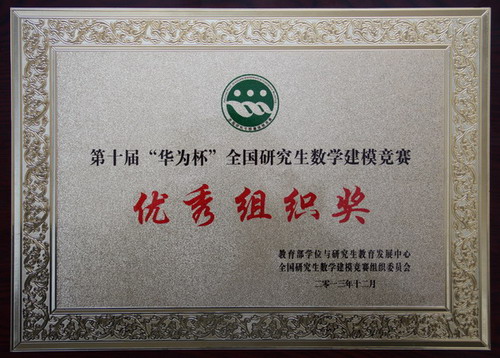 日前,我校在第十届“华为杯”全国研究生数学建模竞赛中喜获佳绩,共有27支代表队获奖,其中全国一等奖1项,二等奖12项,三等奖14项,获奖率达到77%,位列全国规模以上参赛单位第3名。我校获“优秀组织奖”,这是自2009年以来我校连续5年获得该奖项。