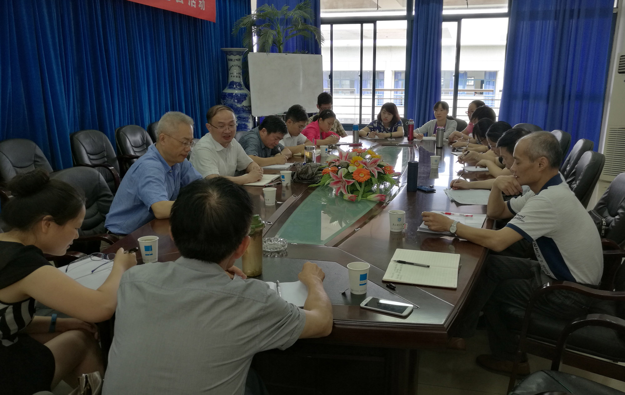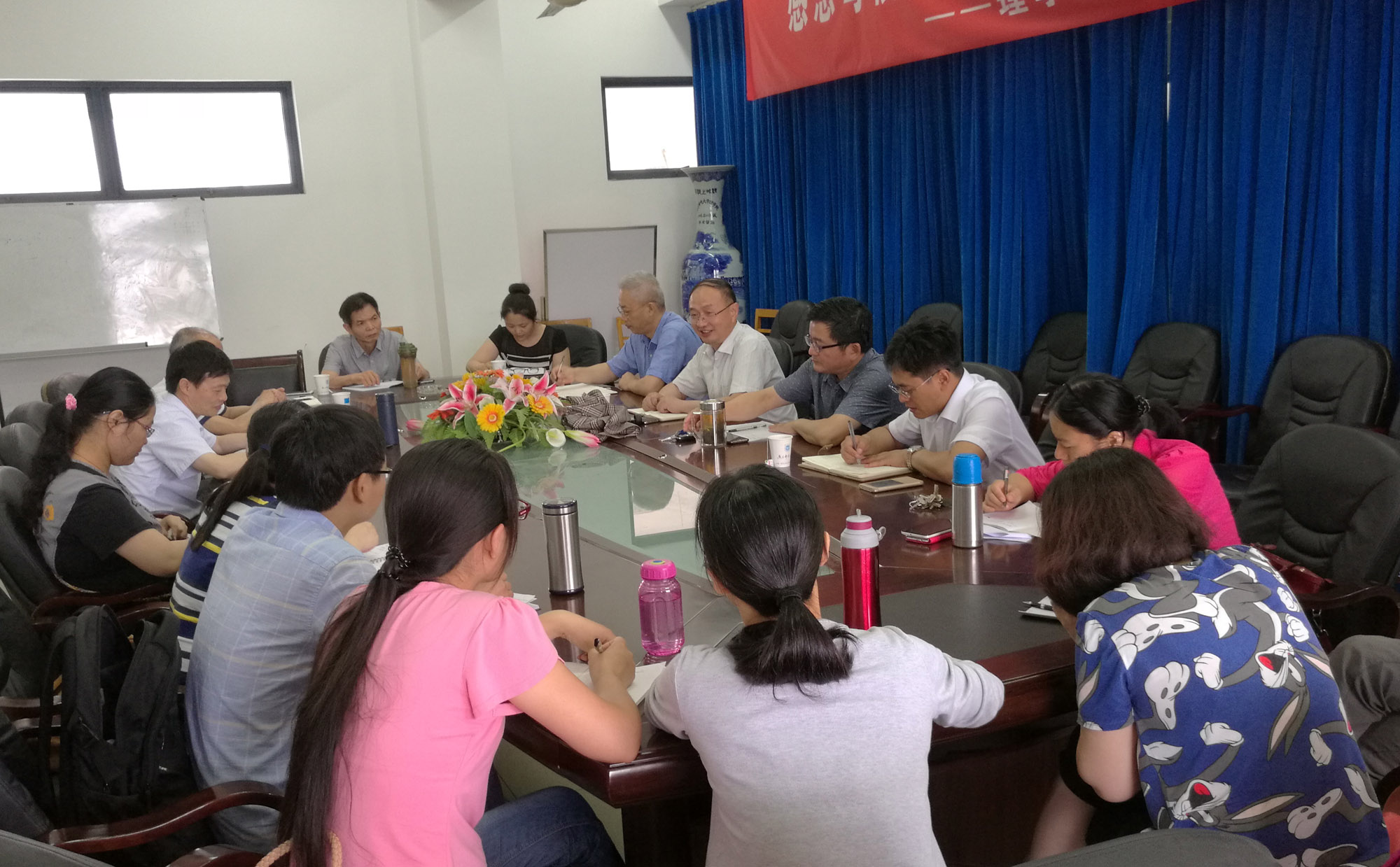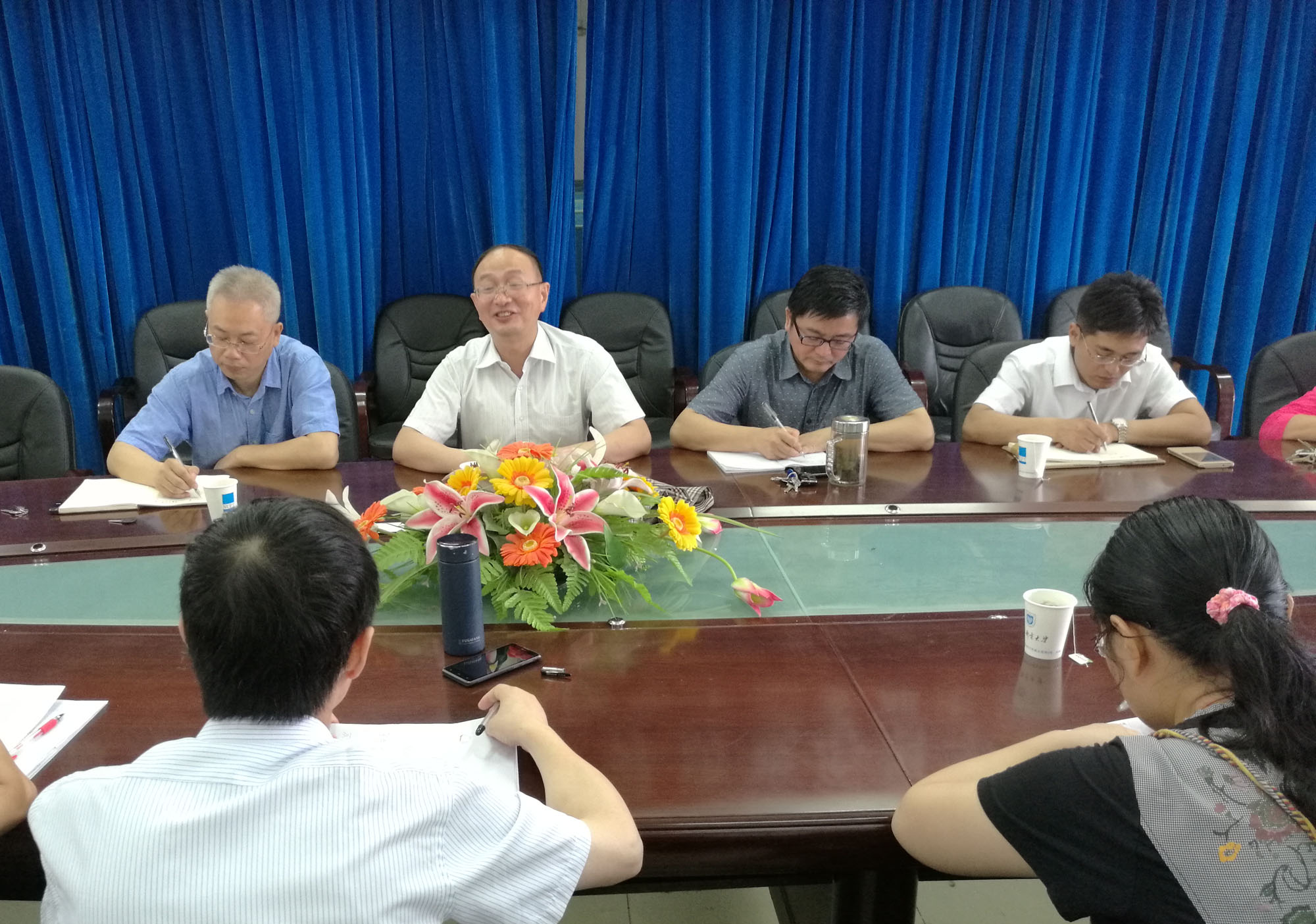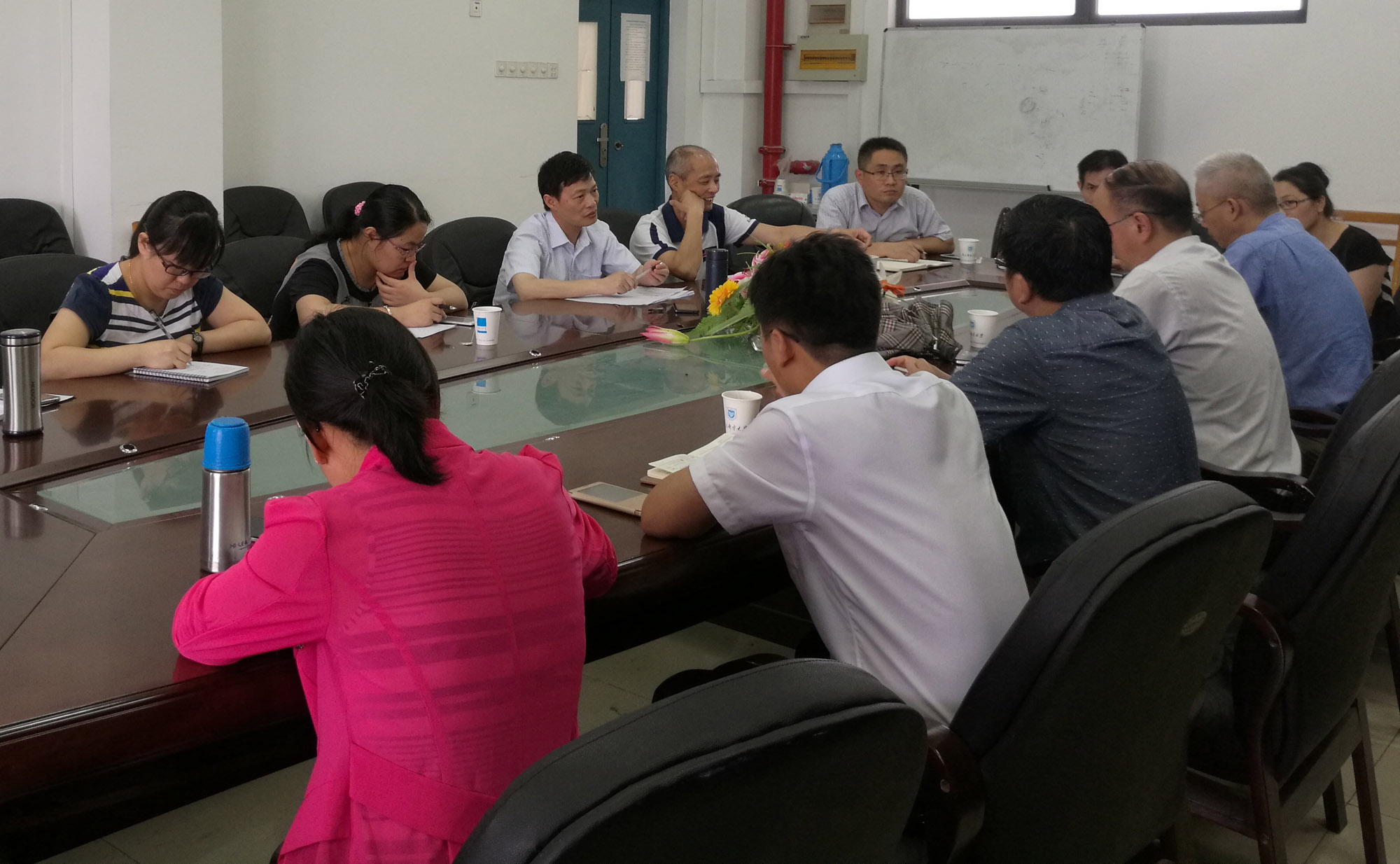 2016年7月3日上午9:00,理学院在教2-501会议室举行会议,教务处处长王友国教授一行莅临理学院指导数学建模竞赛工作,理学院党委书记温勇教授、副院长赵洪牛副教授、副院长兼统计学系主任唐加山教授、副院长李永涛副教授、总教练孔告化副教授、资深教练邱中华副教授以及全体数模教练参加了会议,会议由唐加山副院长主持。