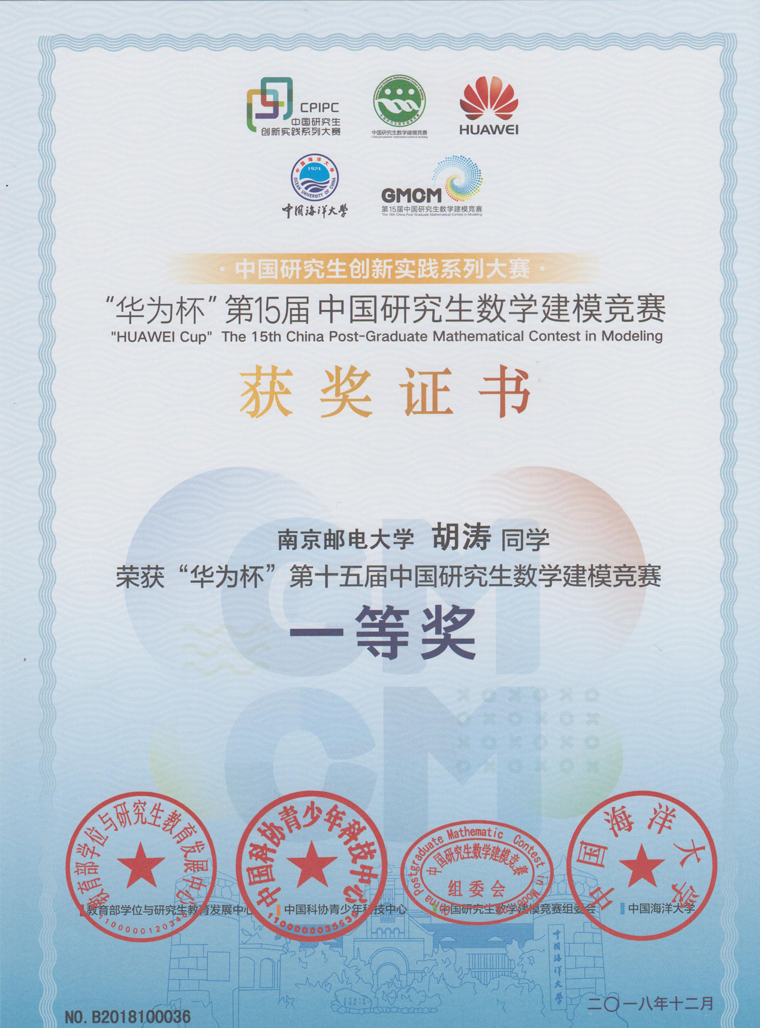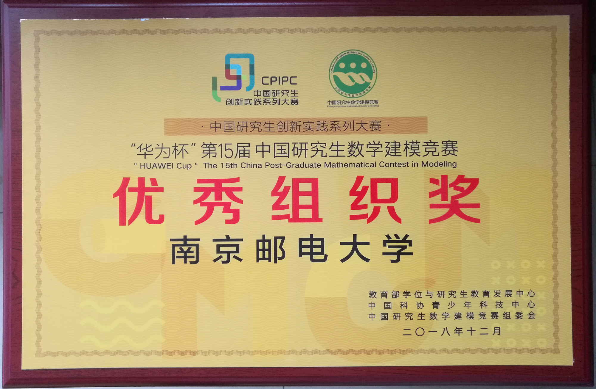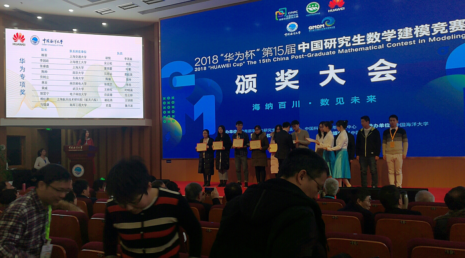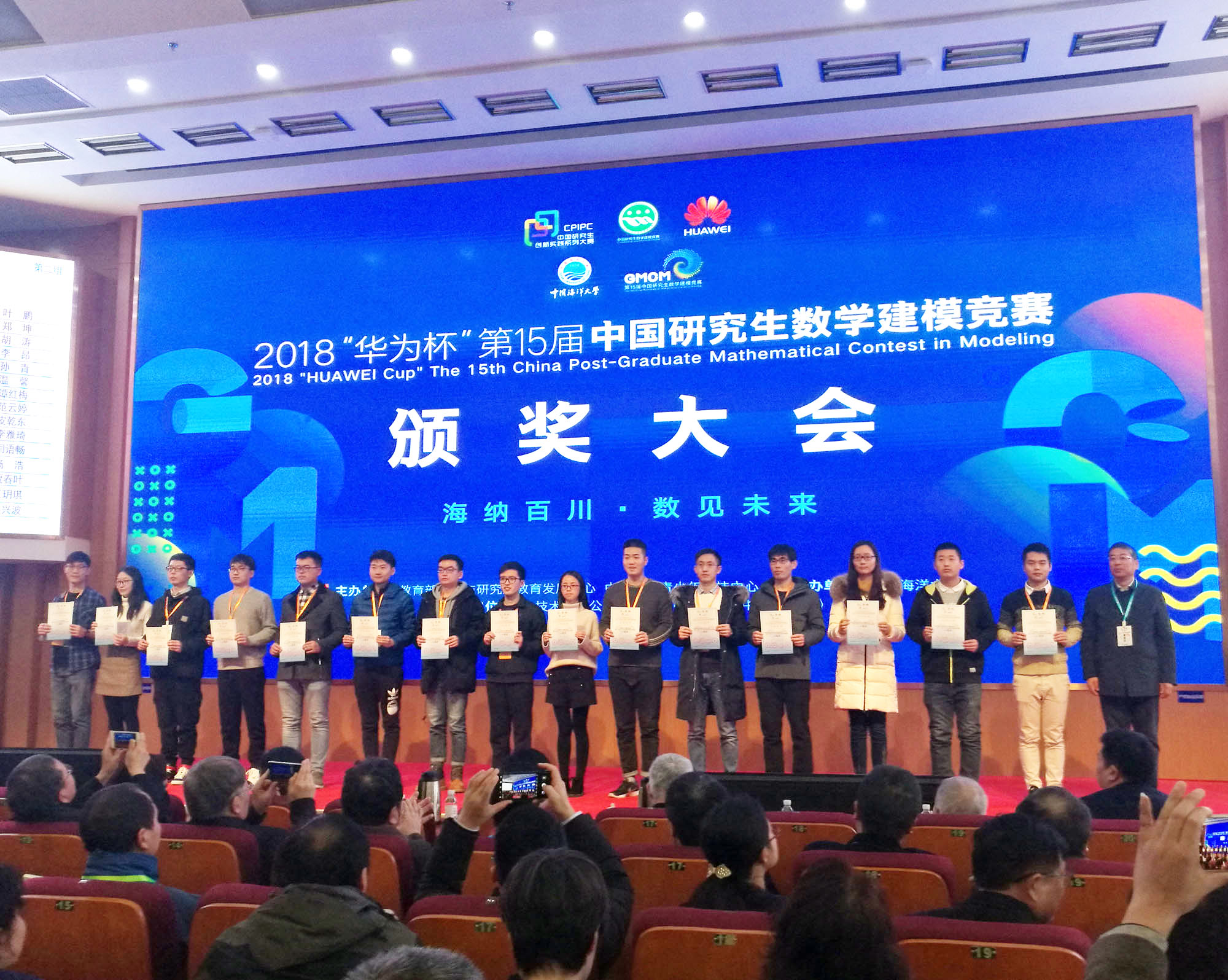 2018年12月7-10日,中国研究生创新实践系列大赛“华为杯”第十五届中国研究生数学建模竞赛颁奖大会在中国海洋大学举行,除获得一等奖3项,二等奖7项,三等奖19项外(详见本网站11月23日新闻)外,我校荣获“华为杯”第十五届中国研究生数学建模竞赛优秀组织奖。