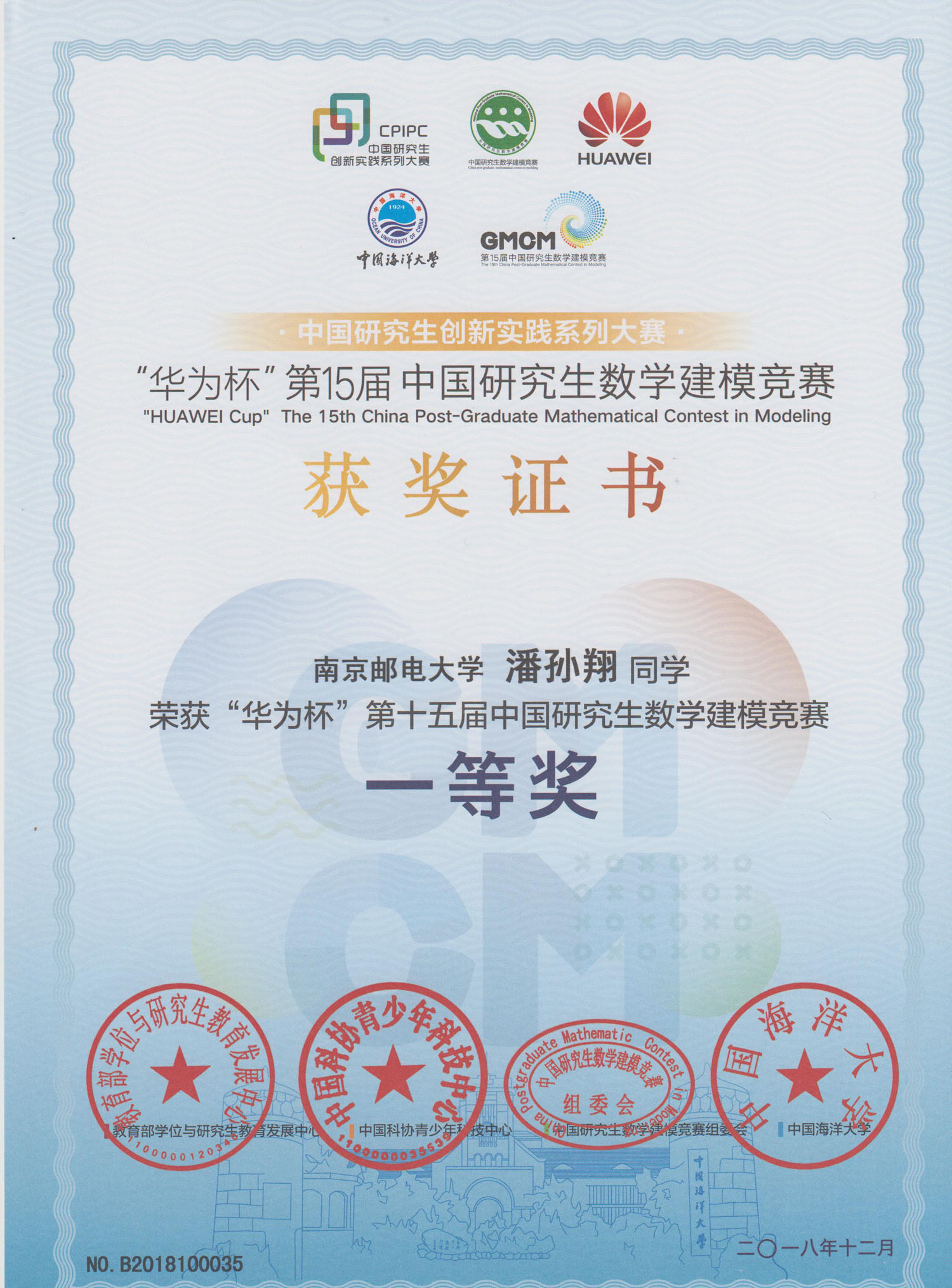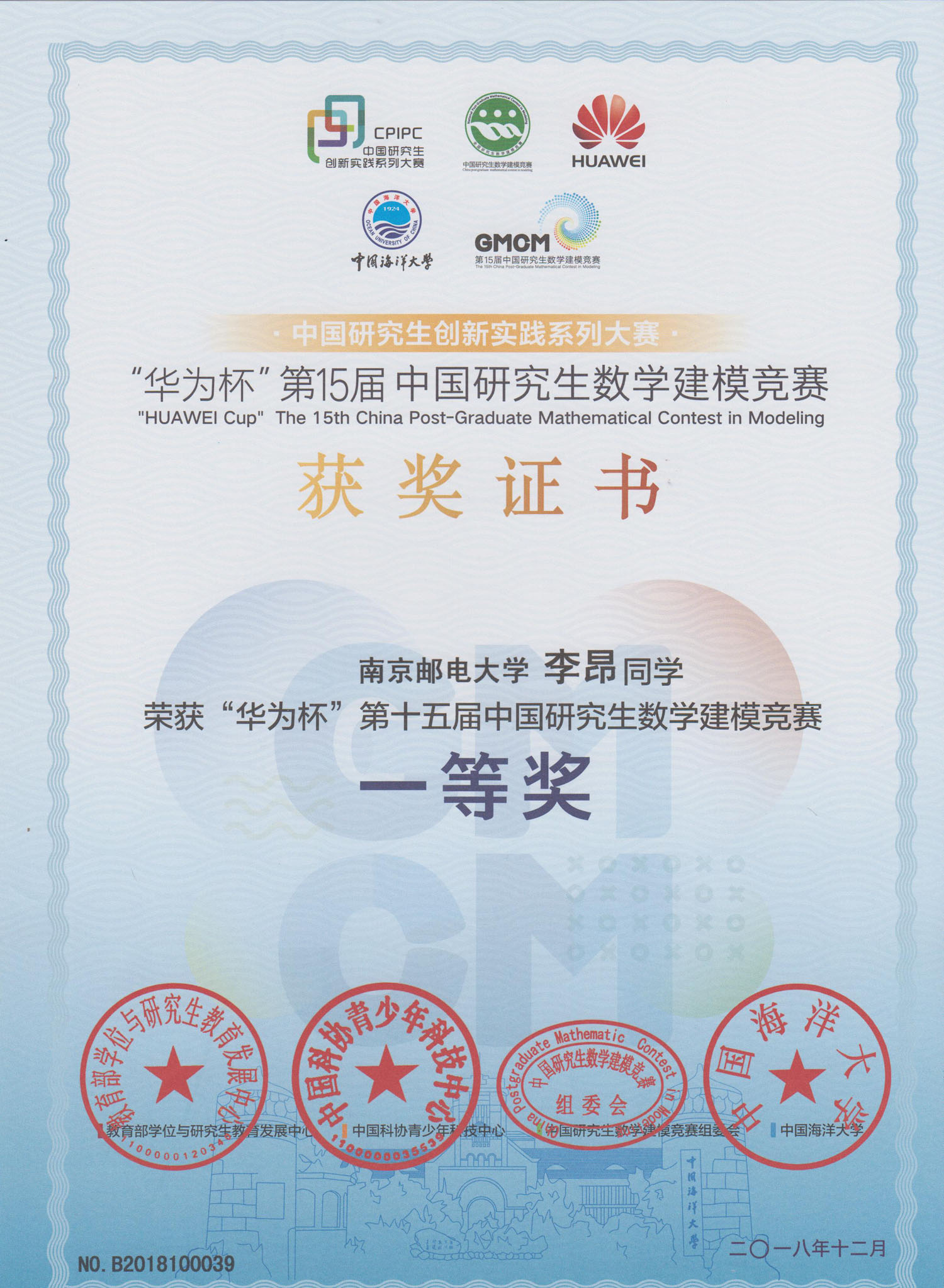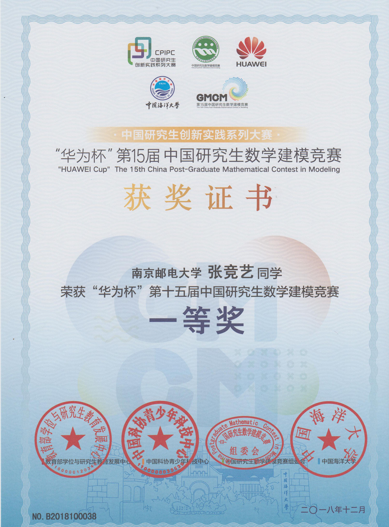 2018年12月7-10日,中国研究生创新实践系列大赛“华为杯”第十五届中国研究生数学建模竞赛颁奖大会在中国海洋大学举行,除获得一等奖3项,二等奖7项,三等奖19项外(详见本网站11月23日新闻)外,我校荣获“华为杯”第十五届中国研究生数学建模竞赛优秀组织奖。