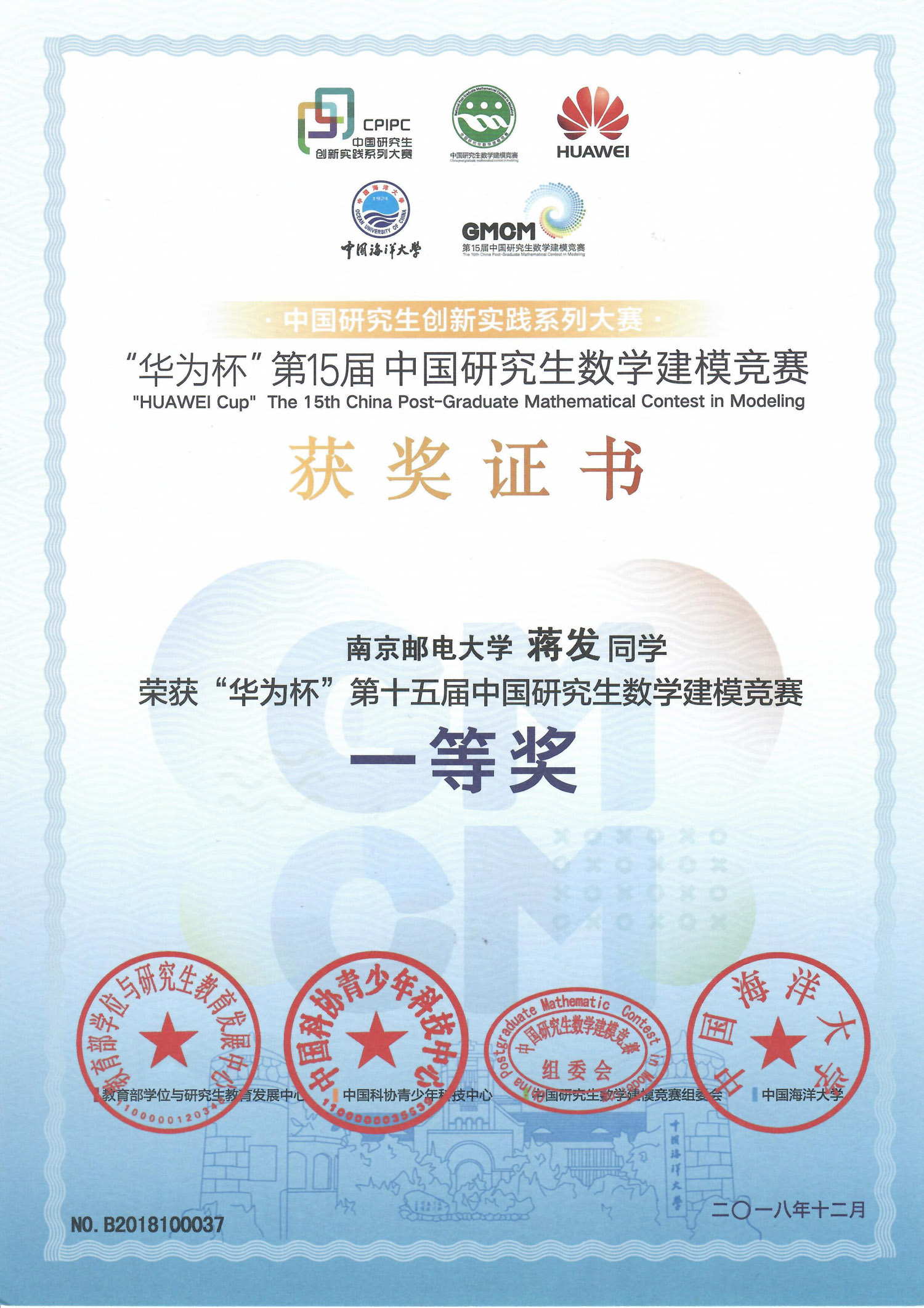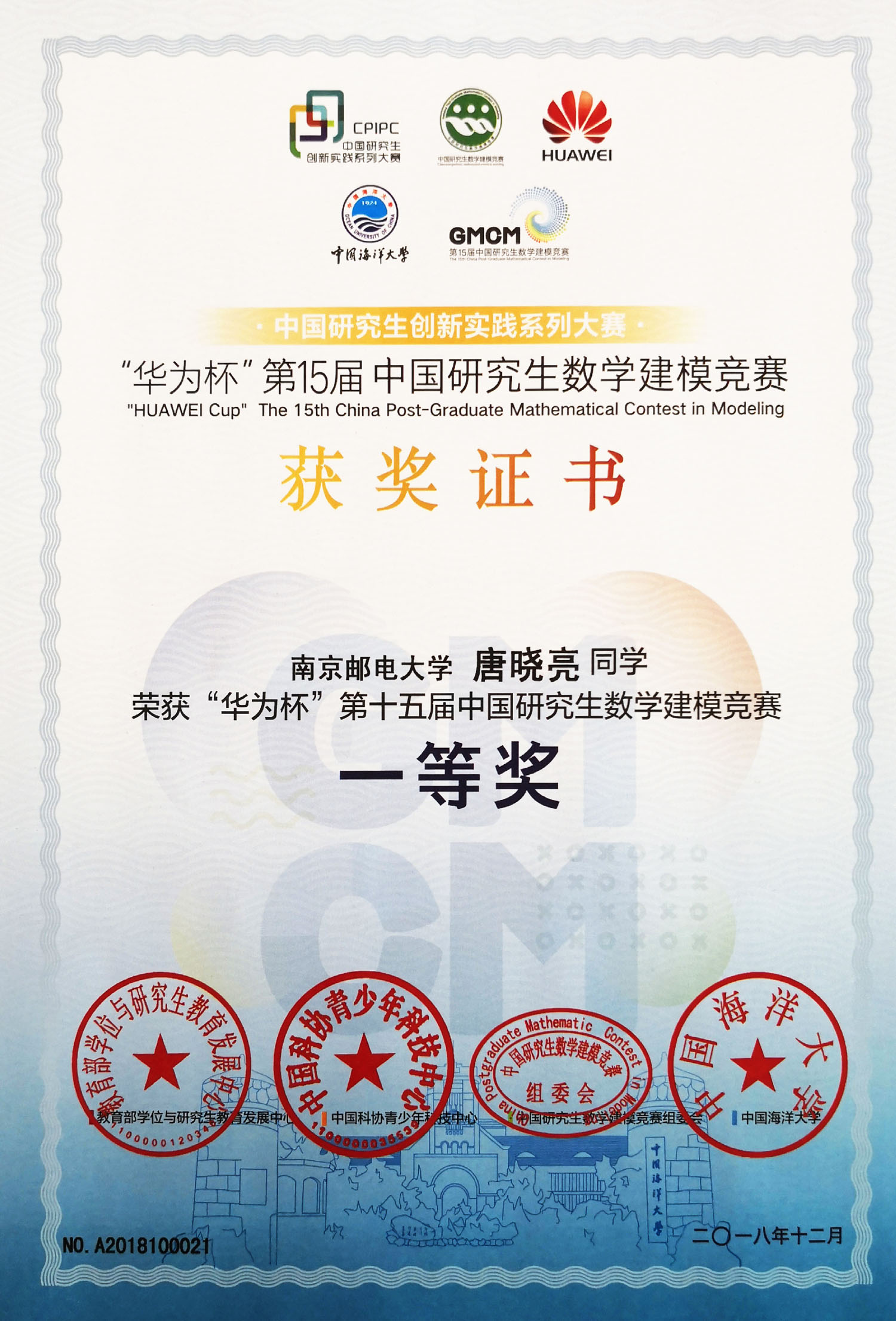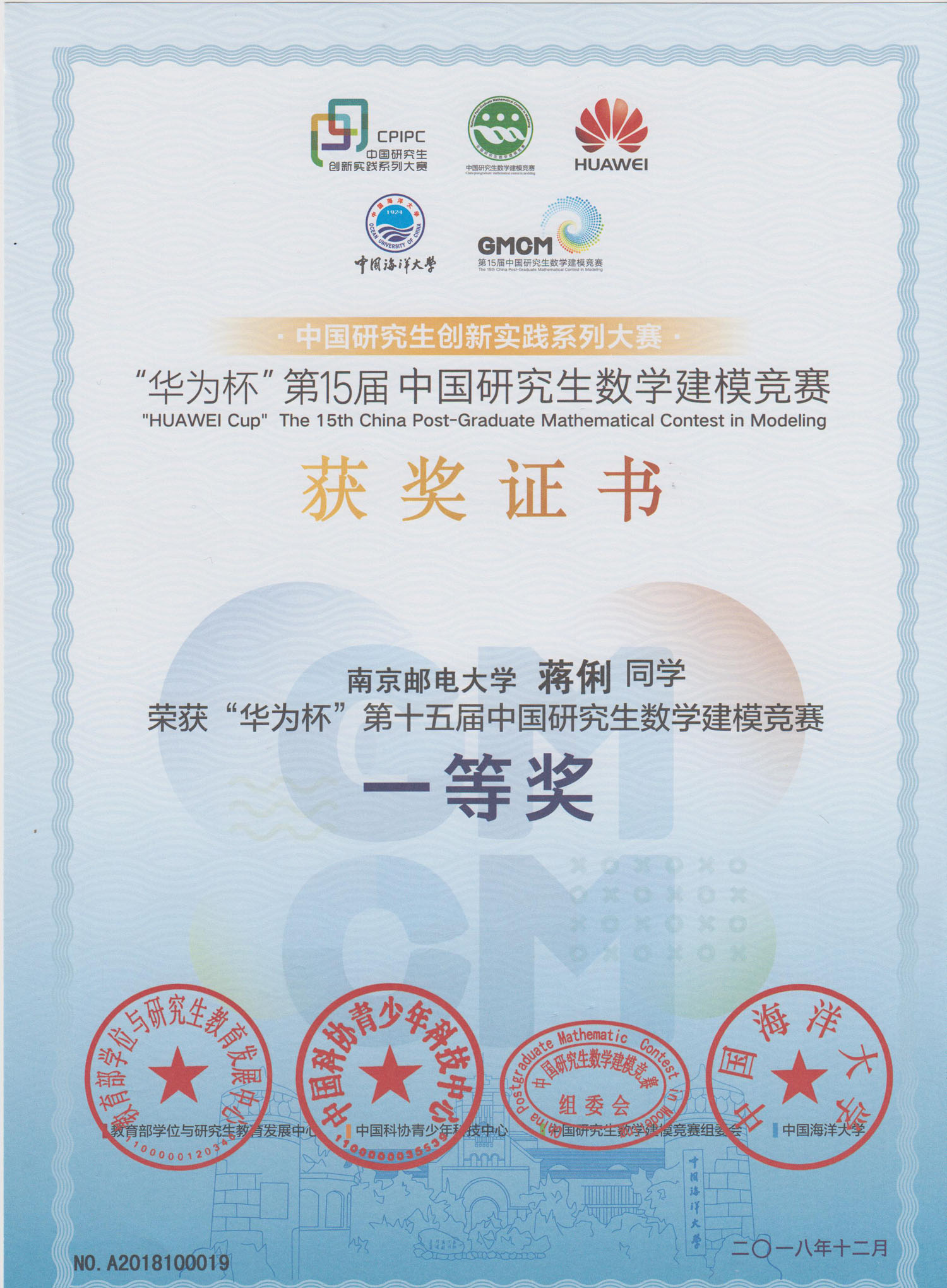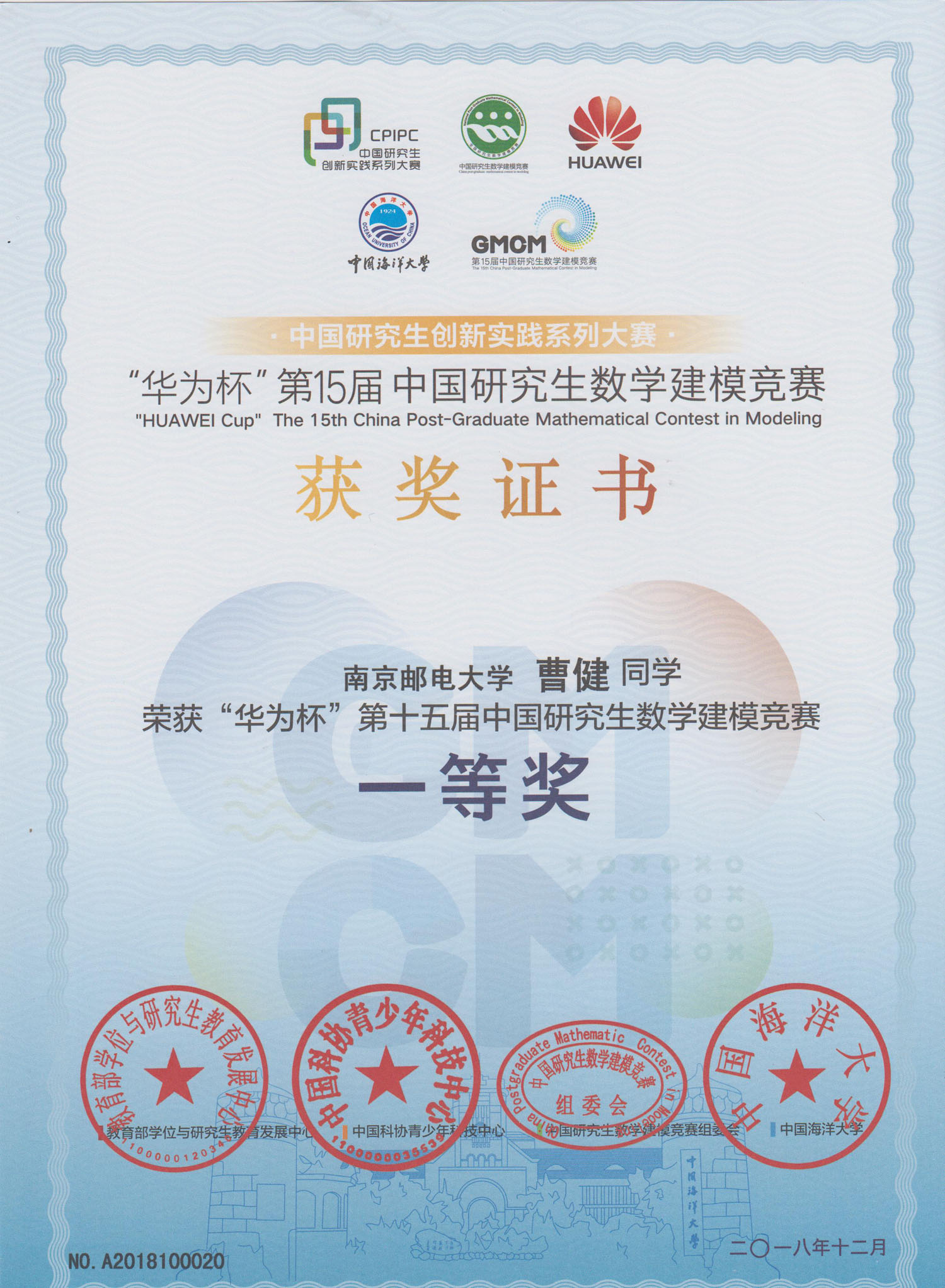 2018年12月7-10日,中国研究生创新实践系列大赛“华为杯”第十五届中国研究生数学建模竞赛颁奖大会在中国海洋大学举行,除获得一等奖3项,二等奖7项,三等奖19项外(详见本网站11月23日新闻)外,我校荣获“华为杯”第十五届中国研究生数学建模竞赛优秀组织奖。